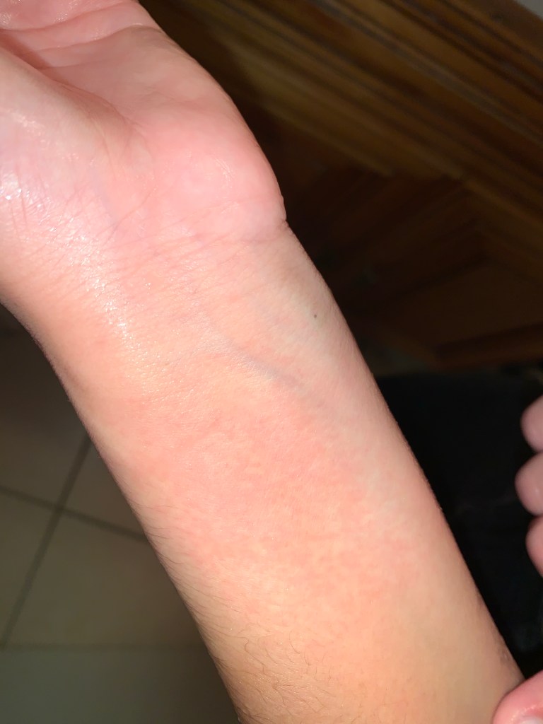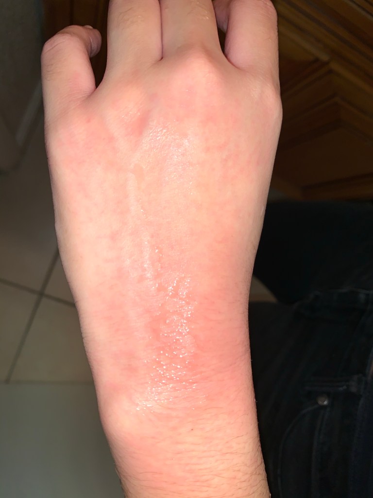 Friday night my hands were extremely red, they burned, and I could not touch water without seeing patches form.